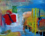2017Soort experiment om eens een heel klein schilderijtje te maken.Hoe gaat dat, wat kom je tegen, hoe ga je om met een veel kleinere ruimte dan ik gewend ben, kan ik daar tegen, wat gebeurt er dan? Het is gelukkig goed gegaan en resultaat is eenvoudig maar wel mooie kleuren en afwisselende lijnen.